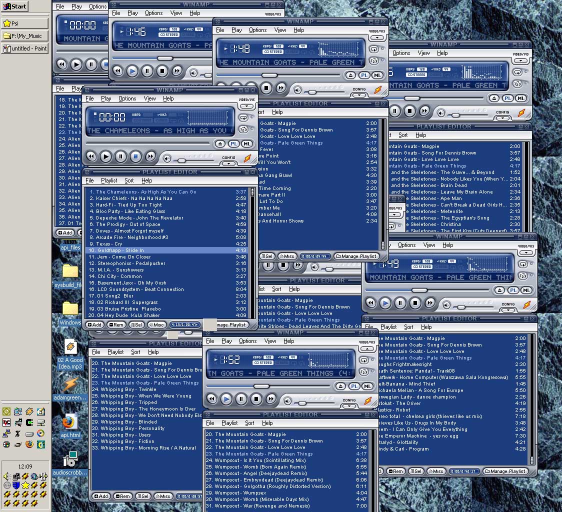 Now, as many people know, I'm quite opposed to listening to music on shuffle. I don't own an mp3 player, and all my mp3s on my computer are neatly organised into directories by artist and album title. Eviltwinemma suggested that selecting the lot and hitting "play" would queue everything up for me (not that I'm suggesting the following is her fault!).